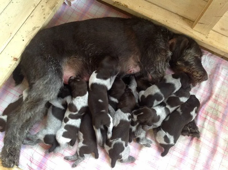Щенков до 4 месяцев кормят 4 раза в день, с 4 до 6 месяцев — 3 раза, с полугода — 2 раза в день. Взрослых дратхааров кормят утром и вечером, желательно после прогулки, а не до неё.