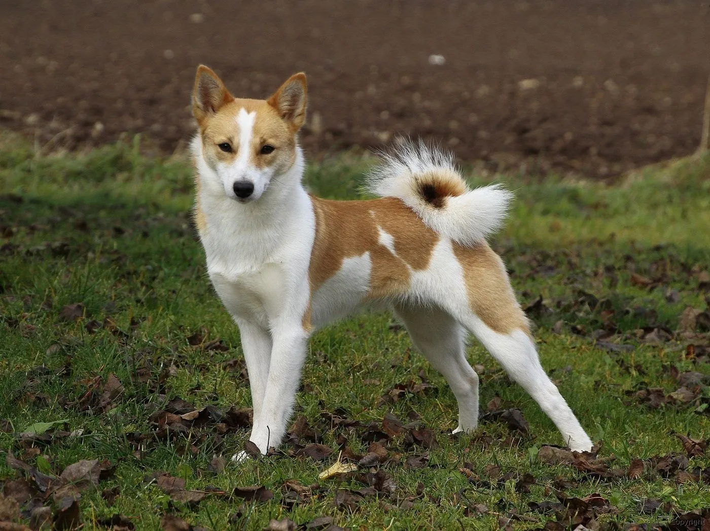 Хвост высоко посажен, средней длины, загнут кольцом и лежит на спине. В движении активно работает, придавая силуэту сбалансированность и подвижность.