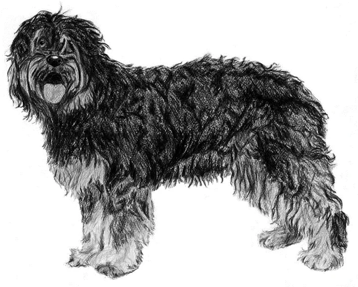 ОБЩИЙ ВИД: Собака среднего размера, умеренно растянутого формата (sublongilinear), деревенского вида, рассудительная, чрезвычайно проворная и быстрая, с размашистыми и плавными движениями. Длинная шерсть по текстуре напоминает козью, без подшерстка. Повадками и обликом напоминает обезьяну, поэтому на своей Родине известна под названием «обезьянья собака».